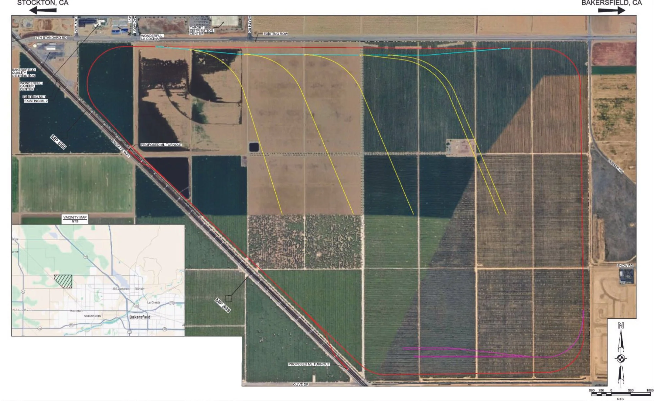 Rail Spur Option 1: Loop track concept with multiple interior spurs across the Ranch